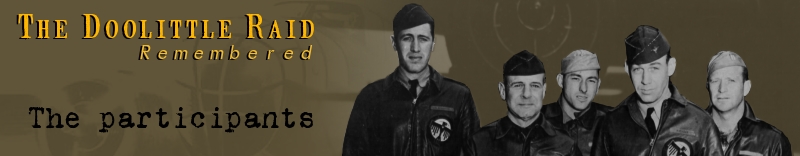 All images and text are © 2004-2008 by the webmaster. All rights reserved. All opinions expressed are the webmasters own and do not reflect the endorsement or rejection of the Doolittle Raiders. If you are interested in using information on any of these pages please email the webmaster first. Some of the content I have here is from personal interviews and research. Some of it is from the public record and is available to others through books, documents, and libraries. If you have questions, comments, or concerns please contact the webmaster at webmaster@doolittleraid.com. Doolittle Raiders Official Websites: www.doolittletokyoraiders.com - www.doolittleraider.com. |